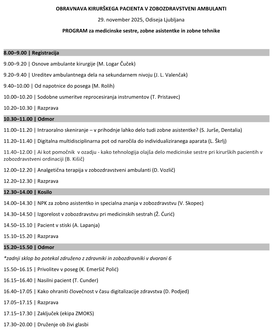- za medicinske sestre, zobne asistentke in zobne tehnike.
