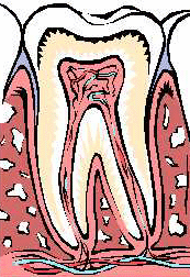 V predelu koreninskega vrčka je kronična vnetna sprememba ("granulom"), ki je ni mogoče pozdraviti z drugimi metodami