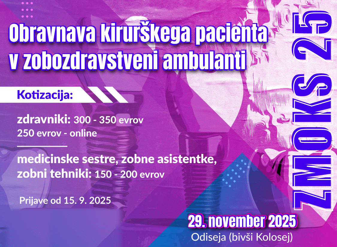 V Združenju, ki je iz leta v leto aktivnejše, pripravljamo in izvajamo strokovna predavanja, seminarje, tečaje. Poskrbeli smo za izdajo informativnih zloženk, ki pacientom na razumljiv način predstavijo najpogostejše operativne posege. Vsaj dvakrat letno se slovenski oralni in maksilofacilni kirurgi in kirurginje sestanemo zaradi obravnave najbolj perečih strokovnih in organizacijskih vprašanj. Oblikujemo skupna stališča, ki vodijo v razvoj stroke, k poglabljanju znanja in h kvalitetni obravnavi bolnikov.